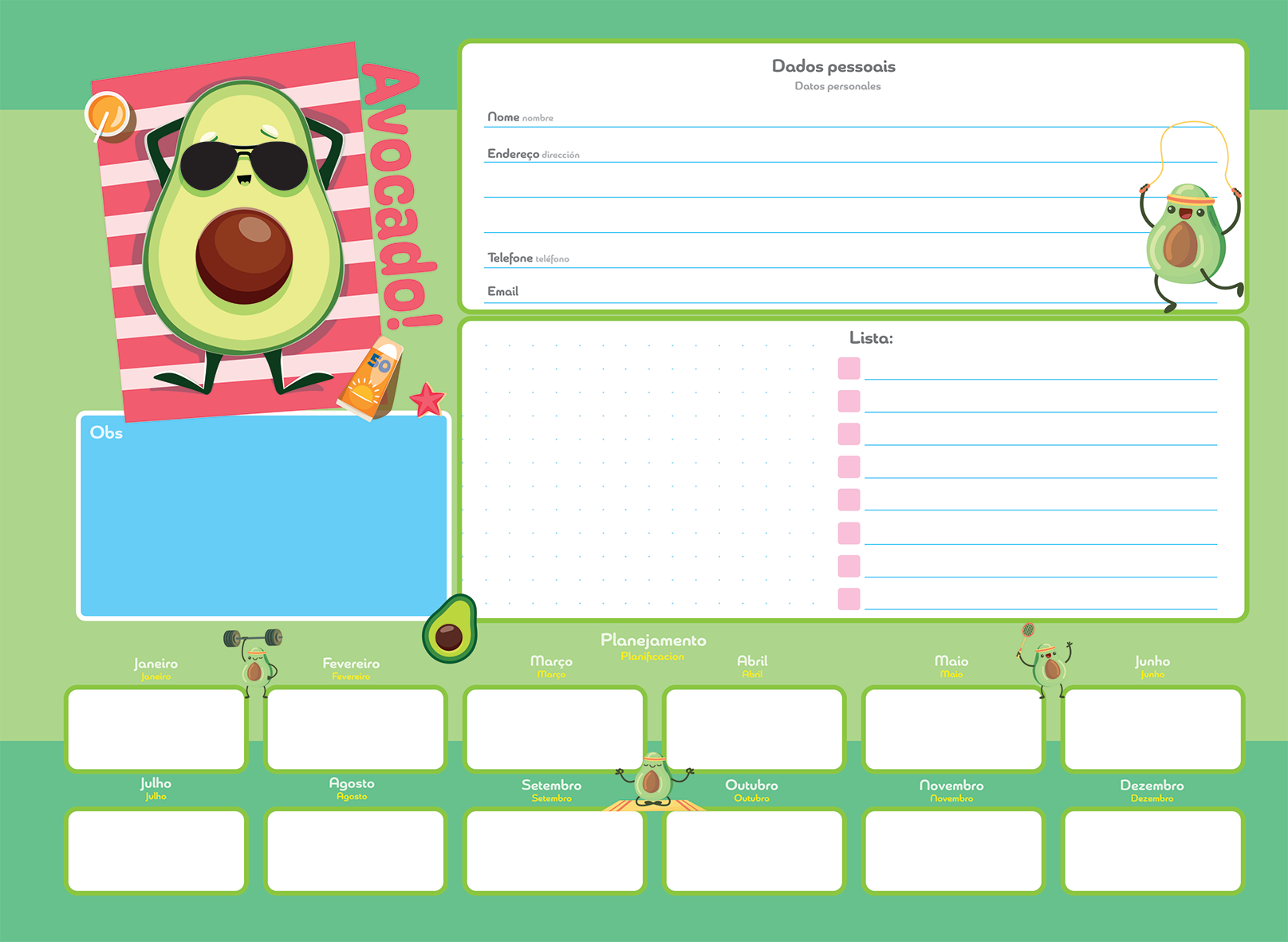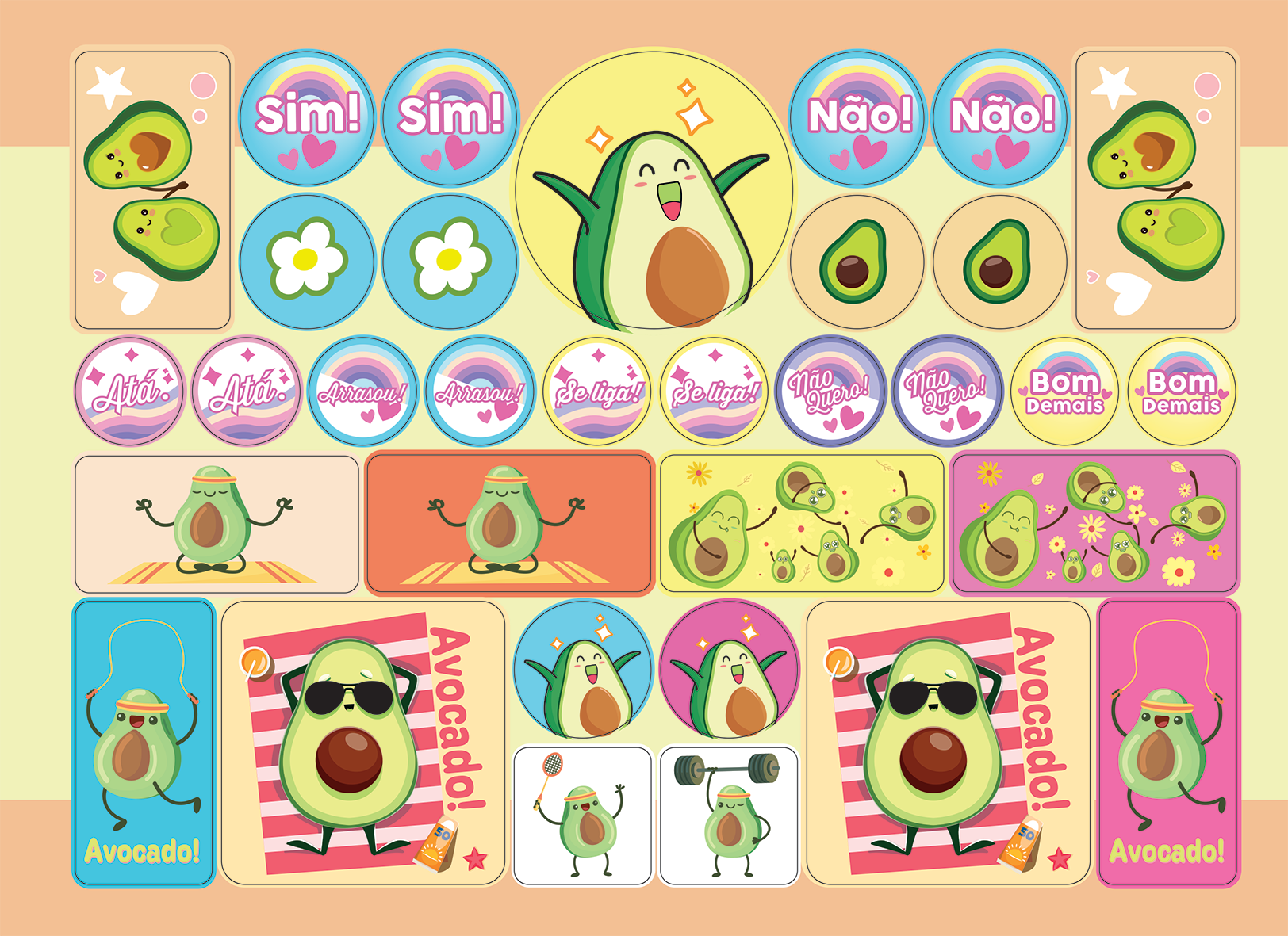 Divertida, leve e cheia de charme, a linha Avocado! traz abacates fofos em situações criativas e cheias de personalidade. Com cores vibrantes e estampas que misturam praia, esportes e amizade, essa coleção espalha alegria por onde passa.