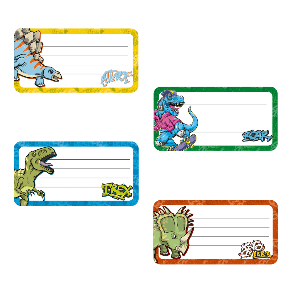 Etiquetas adesivas de identificação para materiais escolares.